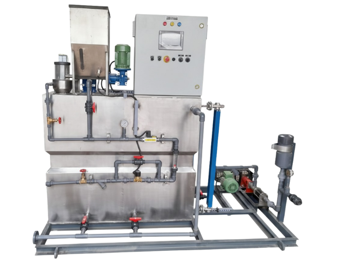 Automation options allow the flocculant dosing system to operate based on flow rate, turbidity, sludge concentration, or PLC control, resulting in improved process stability and reduced manual intervention. The system helps achieve faster settling, improved sludge dewatering efficiency, and lower operating costs.
